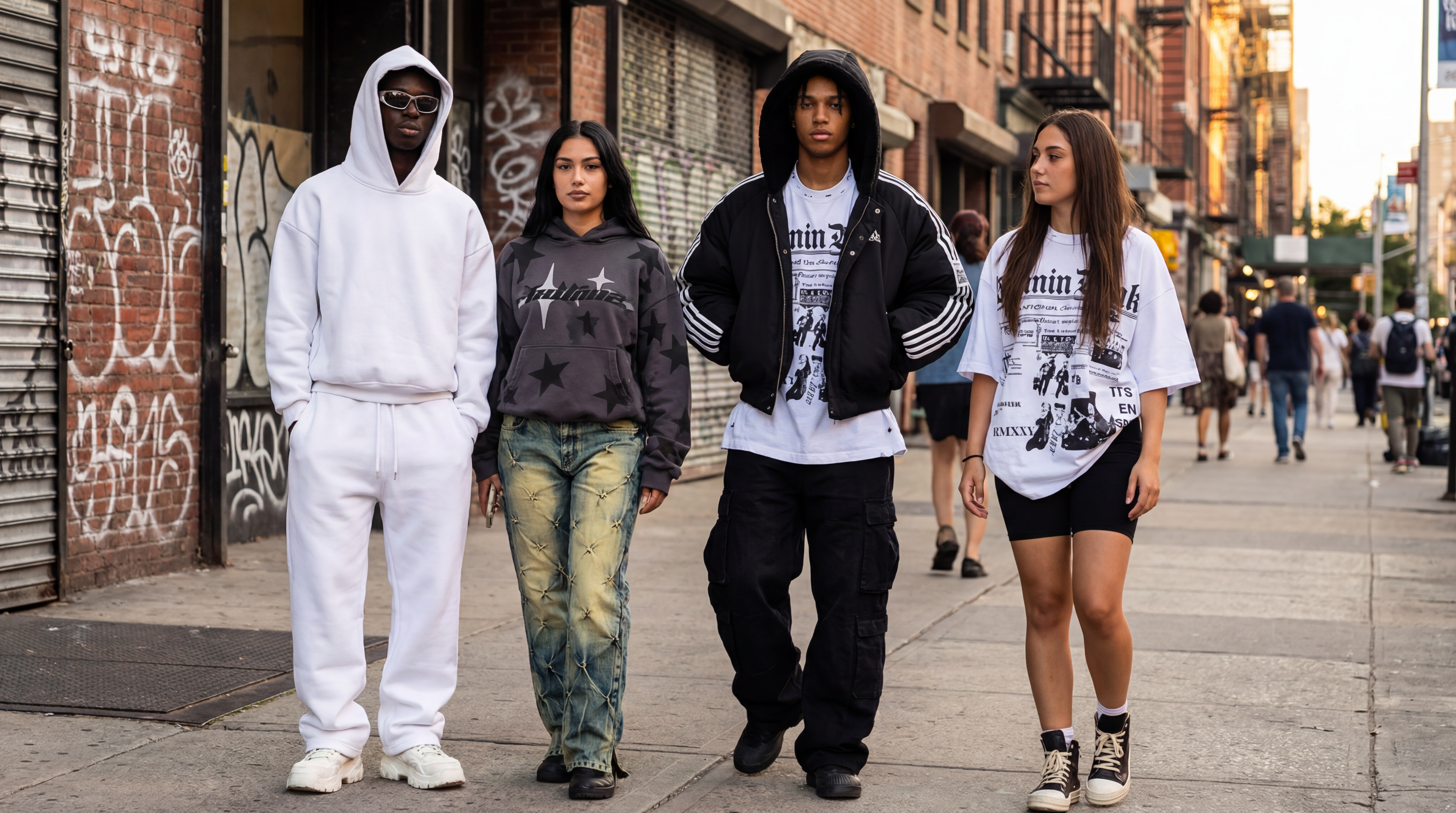 Denim Set – Vintage Hip Hop Striped Embroidered Streetwear